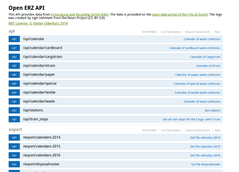 That’s when it got interesting. I knew that ERZ already published their data as CSVs on the Open Data portal of the City of Zurich. I also knew that my fellow open data enthusiasts already created a smartphone app with that data. What I didn’t know at that point was, if there has been any kind of communication between those parties or how this all fits together.